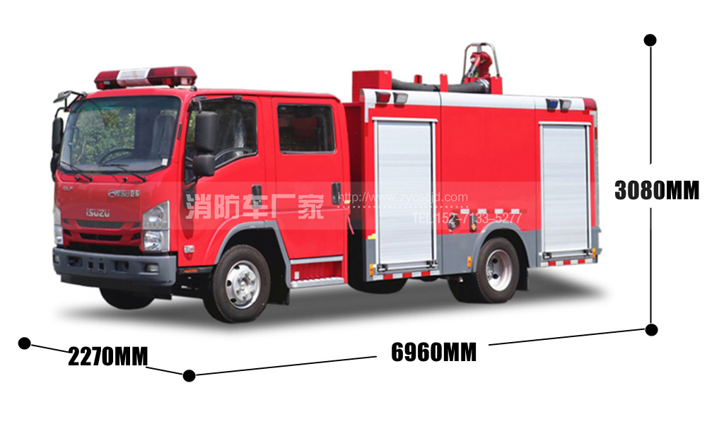 【五十鈴】700P 3.5噸泡沫消防車,在五十鈴700P原裝二類底盤上改裝而成,載水量2.5立方、泡沫1立方,配備常用消防器材,具有機動性好,操作方便,射程遠的特點,適用于消防隊,專職隊,社區、街道、村鎮、工業園、校園、企業等場所。 |